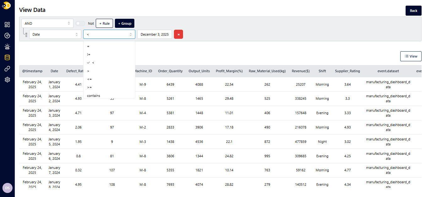 Switch seamlessly between visual insights and audit-ready granular data. Ideal for operational reporting, validations, and compliance-driven environments.
