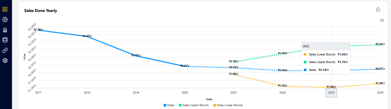 AI-powered time series forecasting. Intelligent trend extension and scenario modelling. Confidence intervals that highlight risk and opportunity. Ideal for planning, budgeting, and operational forecasting.
