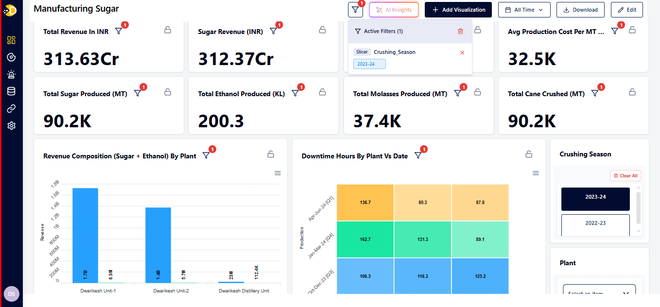 Create complete dashboards, visualizations, and reports with a simple Low- Code/No-Code interface. Empower business teams to build enterprise-grade analytics independently, reducing dependency on IT and accelerating decision- making.