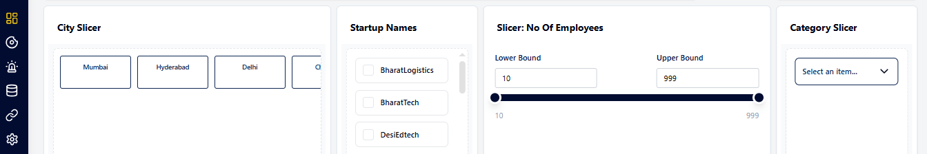 Vertical, Horizontal, Dropdowns, checkboxes and numeric ranges. Instant, multi-level filtering. Enables users to explore data from every angle.