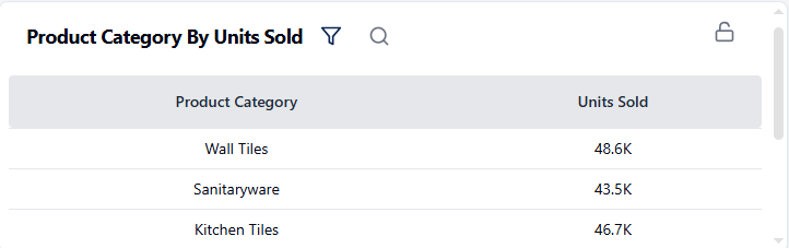 Find exactly what you're looking for inside any chart or table. Search products, employees, cities, categories, or codes directly within the visual boosting efficiency and eliminating endless scrolling.